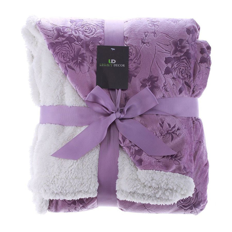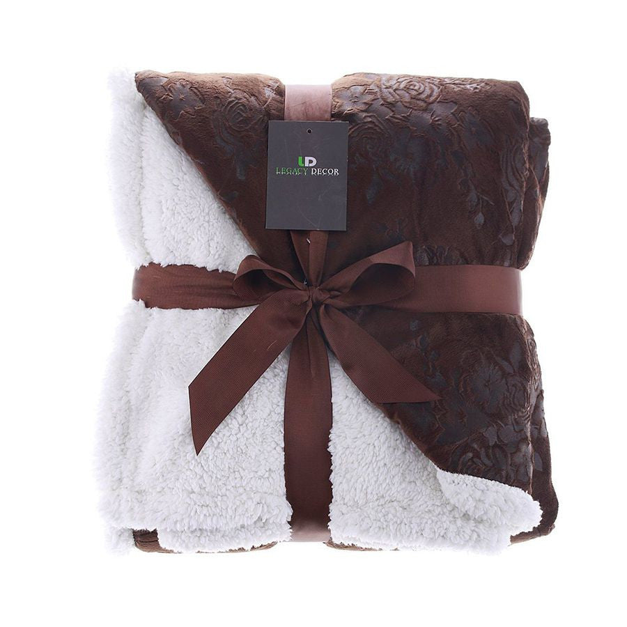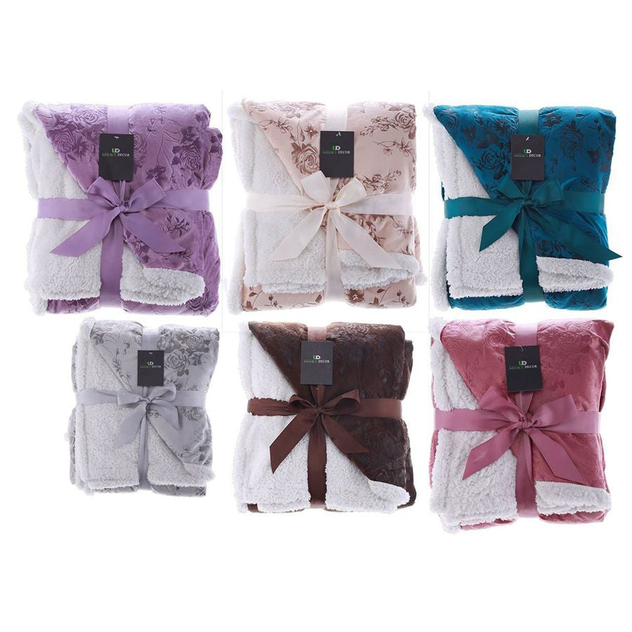 Sherpa and Micro Fur Floral Embossed Throw Blanket 6 Colors